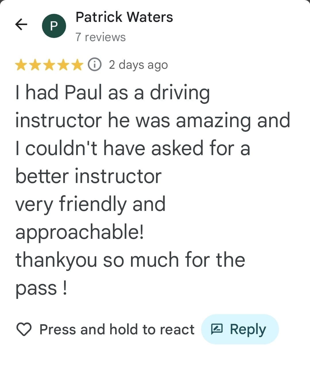 My most interesting moment whilst on a driving lesson has got to be in my foundation training with Leanne, (our head of training) when I had to dual control her ! very daunting considering I put her on such a high pedestal.