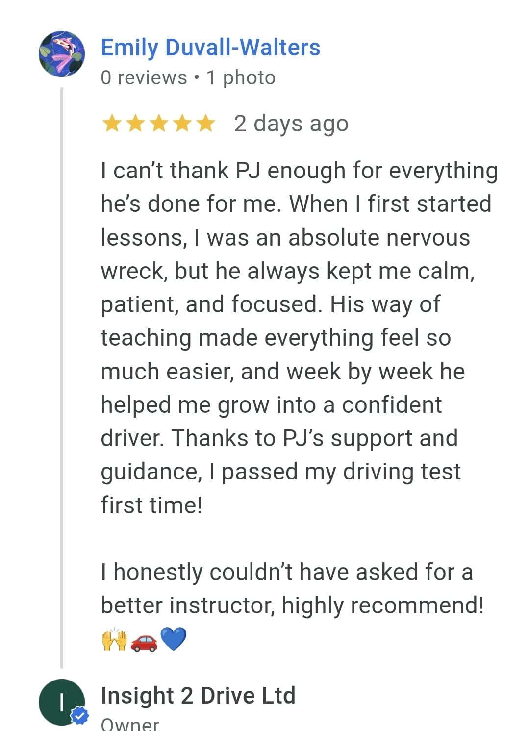When learning to drive myself, I didn’t realise I would enjoy driving and learning about driving.